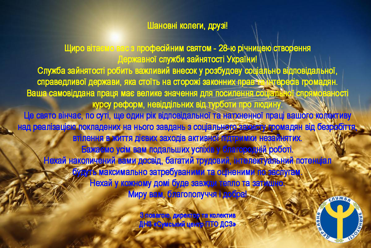 Вітаємо з 28-ю річницею створення Державної служби зайнятості!